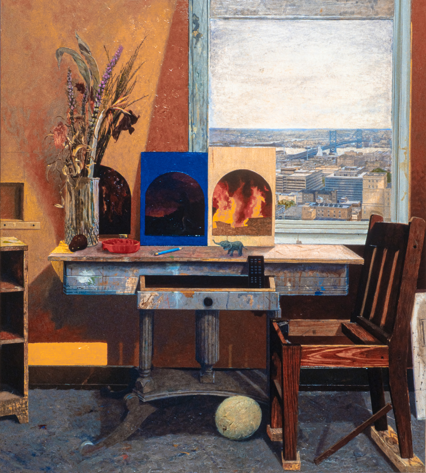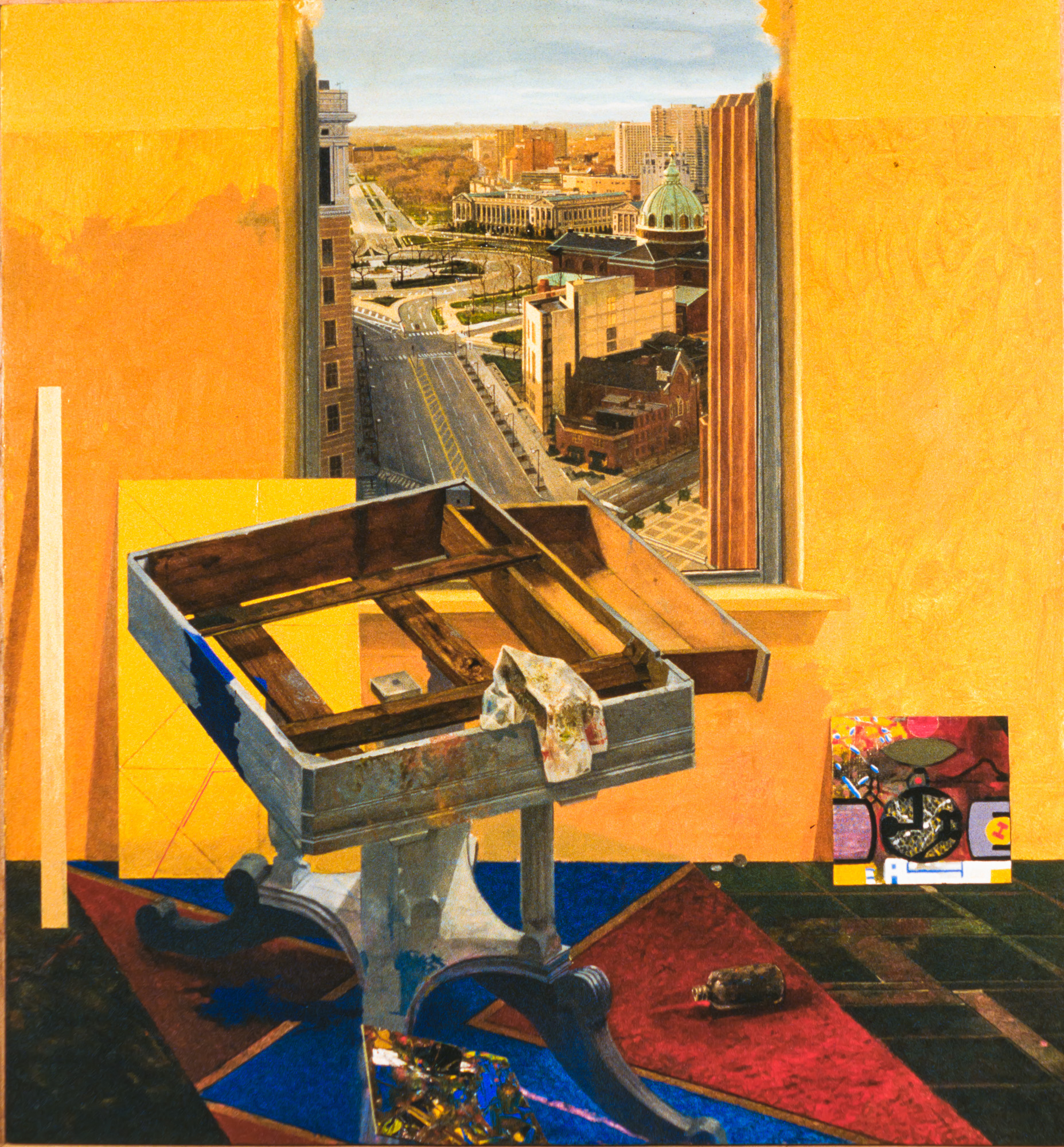 INTERIOR WINDOWS l 381 Penitentiary+Studio Oil-masonitepanel 42×35 1993Private Collection375 ArchStreetMeetingHouse+Studio Oil-woodpanel 40×40 1992Private Collection374 ChinaTown Fire Escape Oil-woodpanel 30×60 1992Private Collection379 Pile of Coal Oil-woodpanel 29×25 1992Private Collection 391 Don’t Forget To Catch Me (Elephant) Oil-masonitepanel 28×42 1993376 LoganCircle+Studio Oil-masonitepanel 45×42 1993Inset Painting: Rodger LapellePrivate Collection366 CreativeBlock+Studio Oil-canvas 50×36 1991 Like Loading...